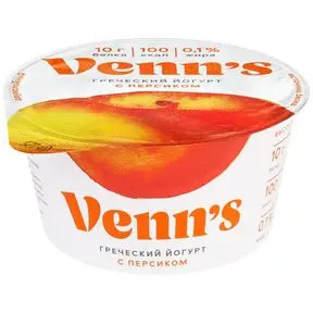 > Йогурт «Venn's» Греческий с персиком жирность 0,1%, 130 грамм